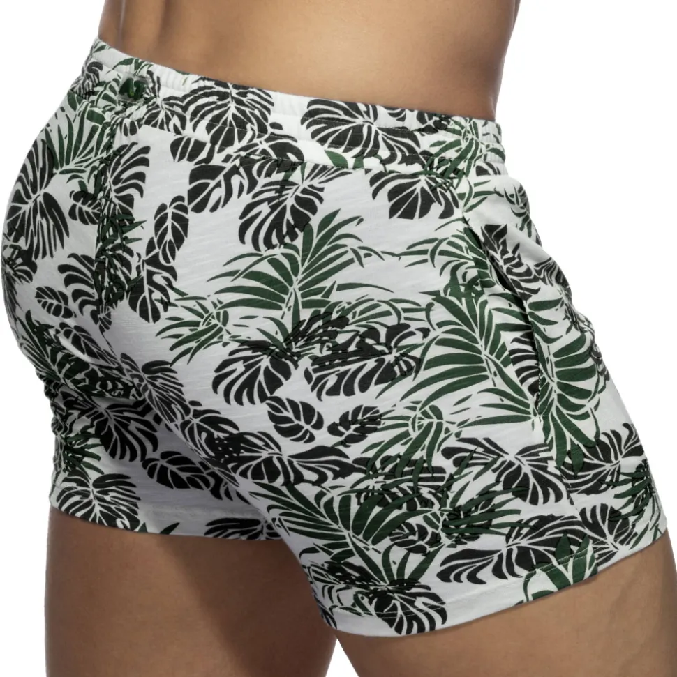 Short en mélange super léger et respirant à base de viscose. Tissu extensible imprimé d’un motif tropical très tendance. Coupe taille basse et ajustée. 2 poches. Ceinture élastique avec cordon de serrage. Logo Addicted en silicone à l’arrière.