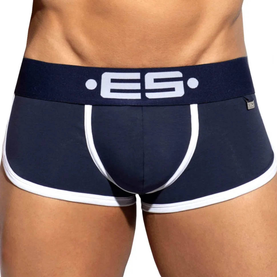 Shorty dont la coupe taille basse parfaitement ajustée a été conçue par Les Dessous d’Apollon. Poche frontale superbement découpée pour un très grand confort. L’échancrure sur le côté est soulignée par une bande de couleur contrastée. Large ceinture élastique signée ES Collection. Plaque métallique ES Paris en Zamak inoxydable.