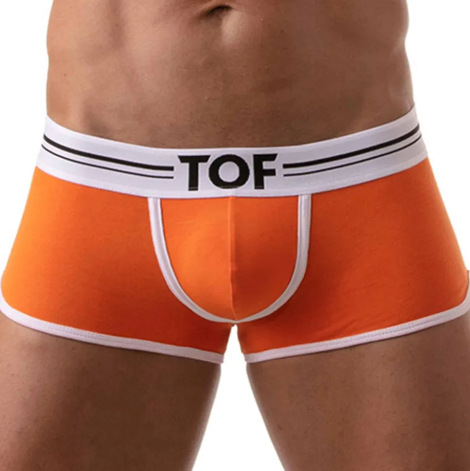Shorty taille basse en coton stretch. Grande poche frontale doublée. Bordures de couleur contrastée. Superbe coupe incurvée sans couture sur les côtés, pour un grand confort et de belles fesses rondes. Ceinture élastique jacquard signée TOF. Fabrication française.