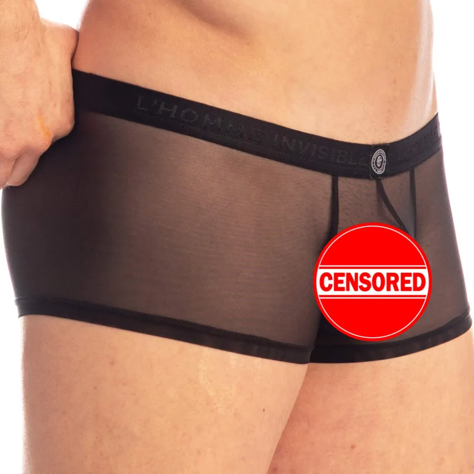 Shorty taille basse très sensuel en tulle transparent ultra fin. Poche frontale ergonomique push up non doublée. Absence de couture à l’arrière et sur les côtés, pour un effet seconde peau. Ceinture élastique signée L’Homme Invisible.