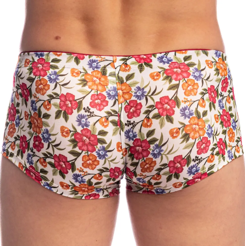 Shorty très sensuel en microfibre extensible douce et confortable. Imprimé floral baroque et très coloré inspiré de la porcelaine de Rouen. Poche frontale ergonomique push up non doublée. Ceinture élastique recouverte signée L’Homme Invisible.