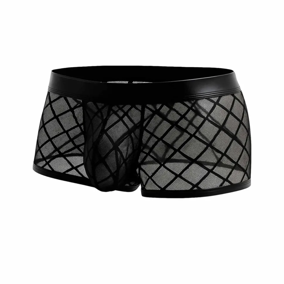 Shorty très sexy en résille extensible transparente, ornée d’un motif géométrique façon toile d’araignée. Coupe minimaliste, taille basse et très ajustée. Poche frontale préformée non doublée. Ceinture élastique en simili cuir.