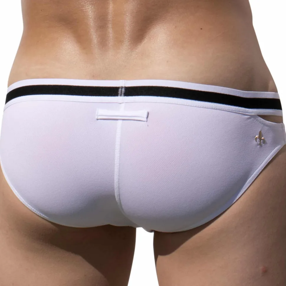 Slip très confortable en micro-résille respirante et extensible. Coupe super taille basse et ajustée. Fente sur le côté pour une touche audacieuse. Poche frontale non doublée. Etiquette Marcuse sur la ceinture élastique. Logo brodé sur la fesse droite.