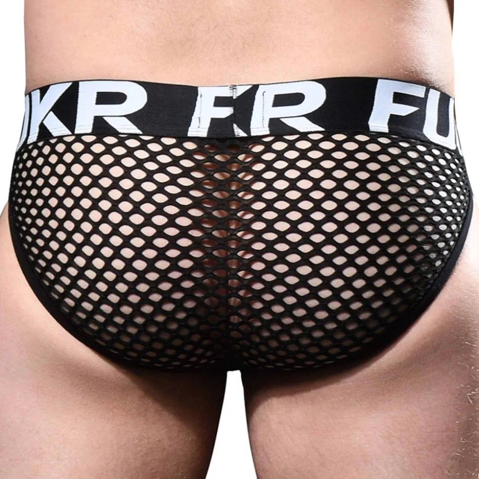 Slip très sexy en résille extensible, dont le maillage large laisse peu de place à l’imagination. Poche Almost Naked, qui épouse et soutient les organes génitaux, sans les comprimer. Ceinture élastique amincissante extra large signée FUKR. Édition limitée.