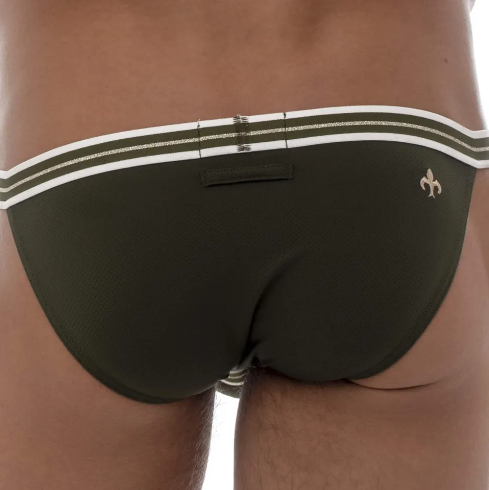 Slip tanga super taille basse en résille douce et soyeuse. Poche frontale 3D non doublée, encerclée par un strap élastique pour un bel effet push up. Logo Marcuse brodé devant et derrière.