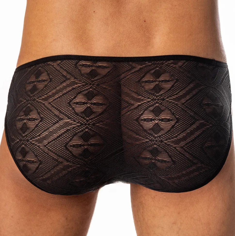Slip très sensuel en jacquard se jouant du contraste entre transparence et opacité des motifs. Coupe taille basse et ajustée. Poche non doublée sans couture pour un grand confort frontal. Etiquette L’Homme Invisible cousue sur la fine ceinture élastique.