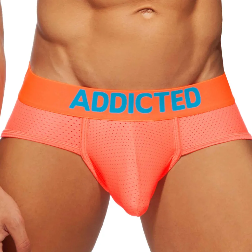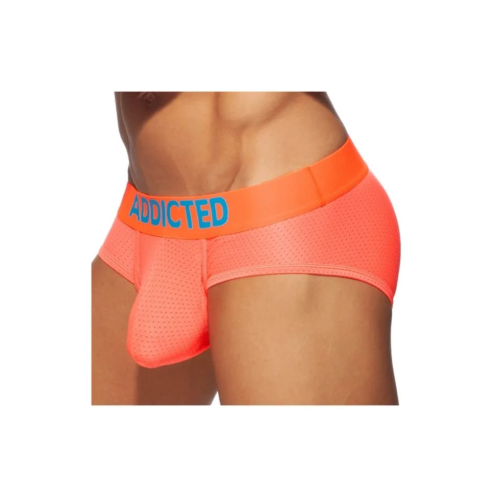 Slip taille basse révolutionnaire en mesh sport, léger et respirant de couleur fluo. Technologie RingUp intégrant un anneau cock ring en silicone (diamètre 5 cm, amovible par bouton pression) pour une érection plus dure et plus longue. Poche frontale push up pour mettre en avant votre masculinité, tout en assurant un maintien très confortable. Ceinture élastique contrastée signée Addicted.