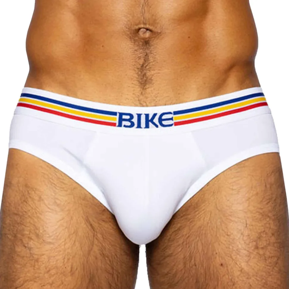 Slip en coton extensible, doux et confortable. Coupe taille basse et ajustée. Poche frontale doublée assurant un maintien ferme et confortable. Ceinture élastique signée BIKE.