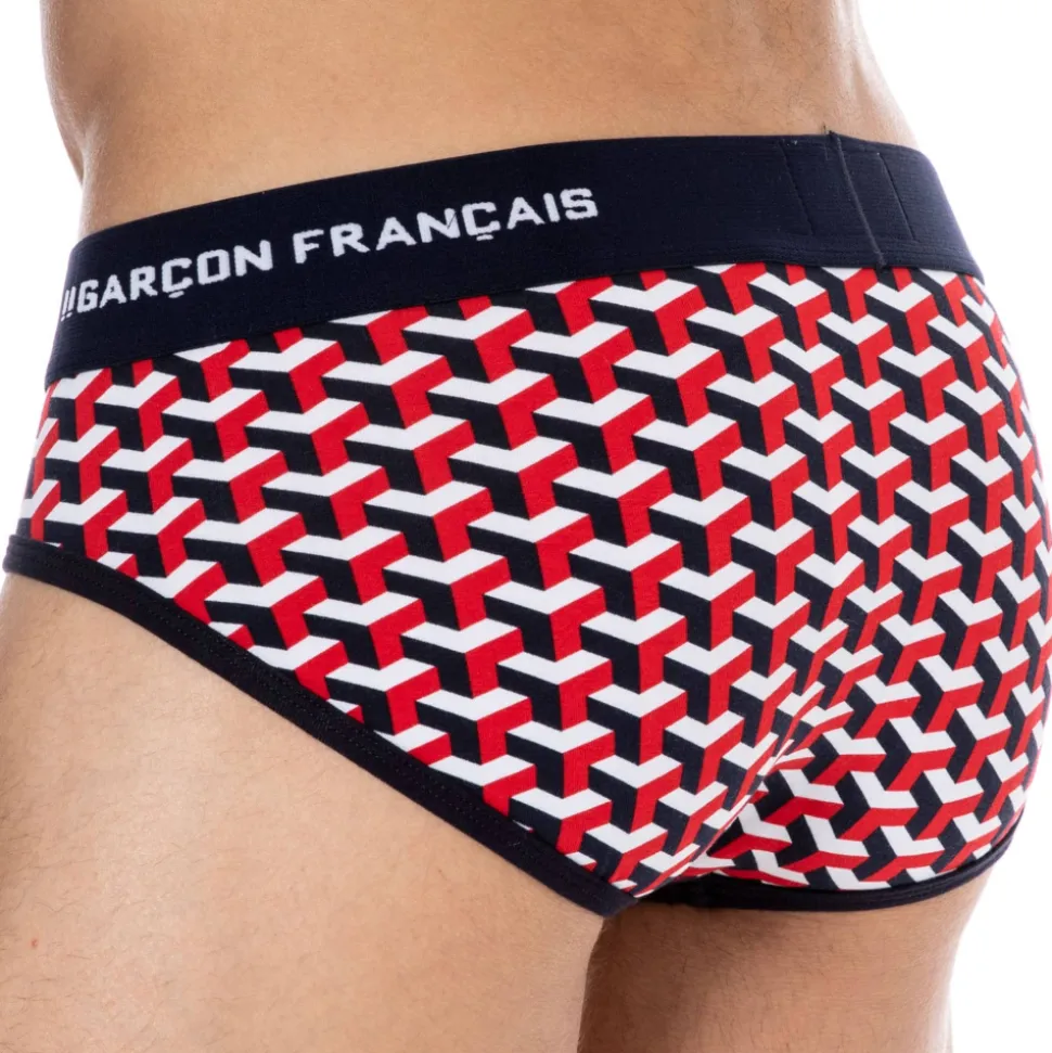 Slip taille basse très ajusté en coton doux, souple et confortable. Imprimé géométrique original. Ceinture signée Garçon Français. Fabrication 100% française.