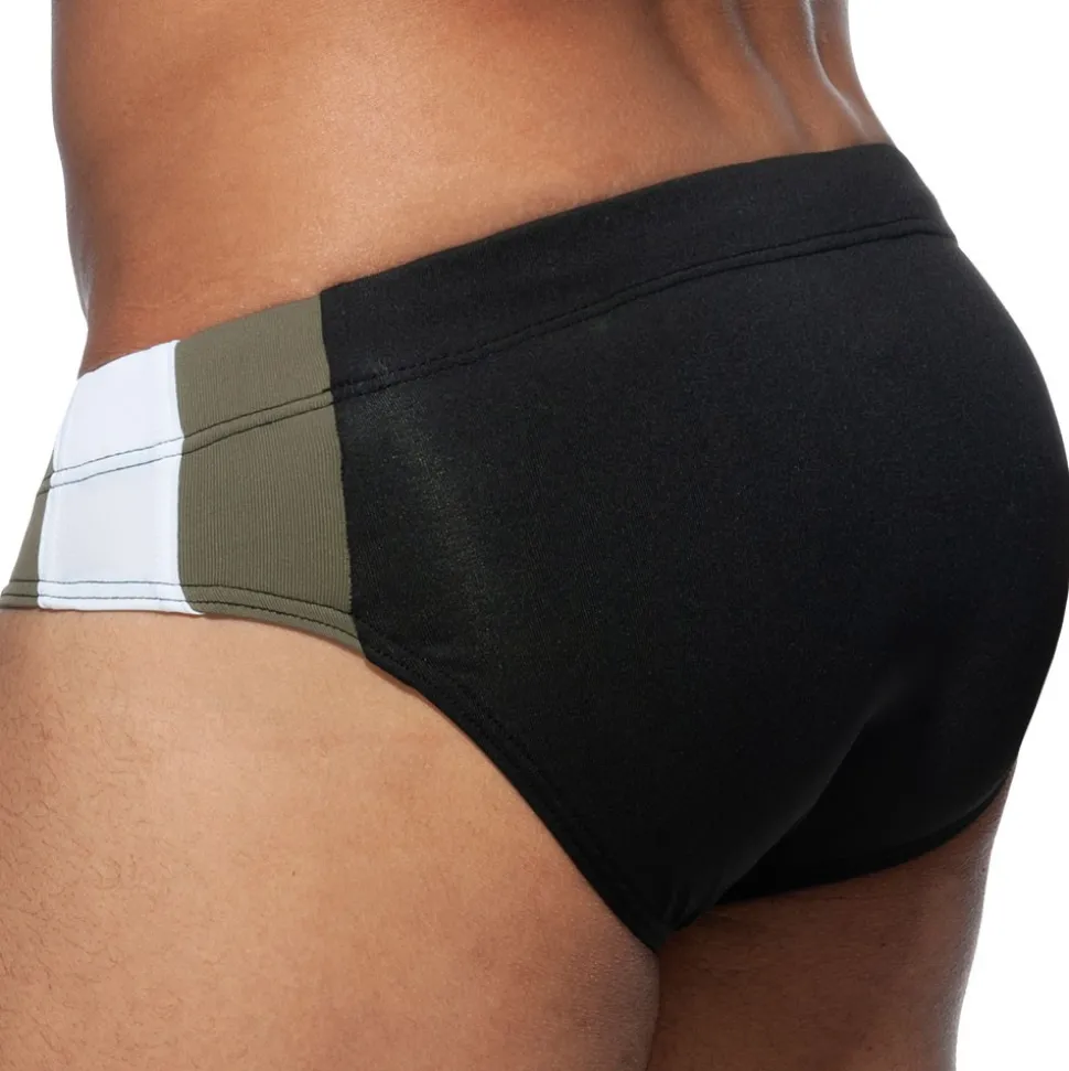 Slip de bain taille basse, sexy et ajusté. Système Pack Up intégré avec mousse amovible pour mettre en avant votre masculinité. Triple bande sport de couleur contrastée de chaque côté. Logo Addicted aux couleurs de l’arc-en-ciel sur la ceinture élastique. Cordon de serrage. Fabriqué à Barcelone.