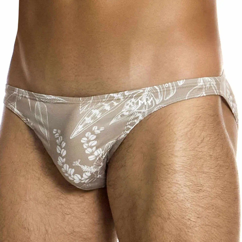 Slip de bain en microfibre séchant rapidement et résistant aux UV. Matière recyclée à partir de bouteilles en plastique. Imprimé floral très élégant. Coupe sexy, minimaliste et ultra taille basse. Poche frontale doublée. Logo MV en silicone sur la hanche gauche.