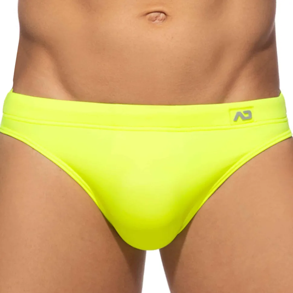 Slip de bain taille basse de couleur fluo. Système Pack Up intégré avec mousse amovible pour mettre en avant votre masculinité. Logo Addicted en silicone. Ceinture élastique avec cordon de serrage intérieur.