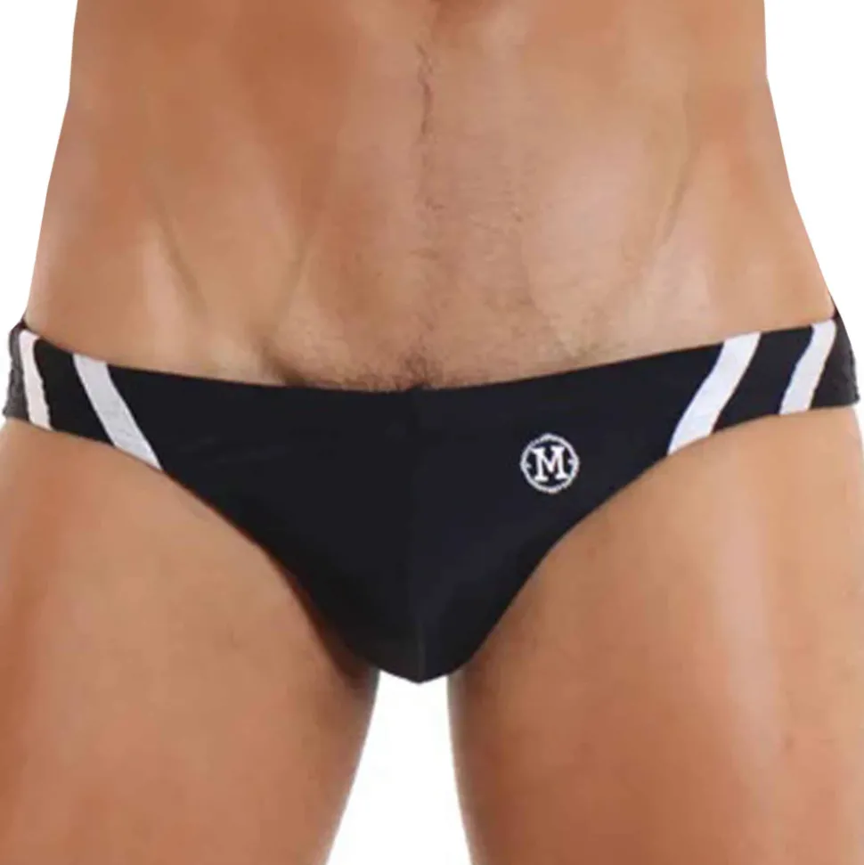 Slip de bain super taille basse en microfibre italienne extensible, douce et confortable. Tissu de qualité premium résistant à l’eau de mer, au chlore et aux UV. 2 bandes de couleur contrastée de chaque côté. Poche frontale 3D doublée. Ceinture élastique avec cordon de serrage intérieur. Logo Marcuse brodé devant et derrière.