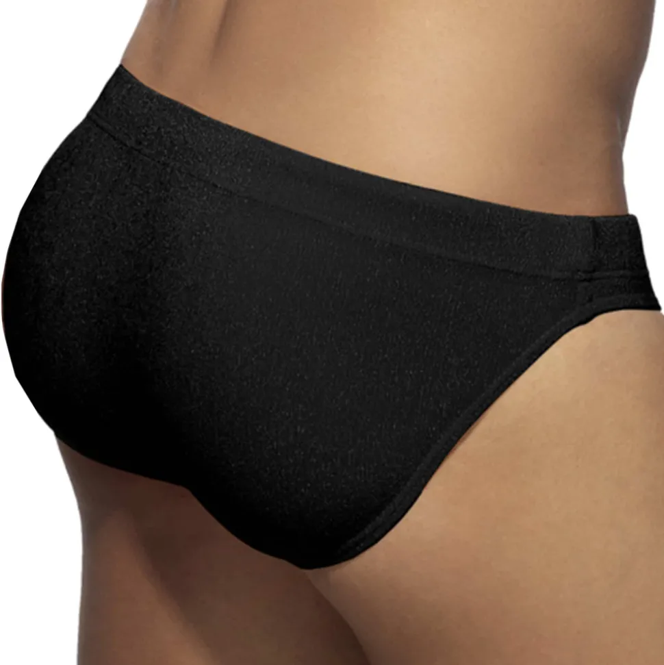 Slip de bain bikini taille basse en microfibre texturée légèrement brillante. Système Pack Up intégré avec mousse amovible pour plus de volume frontal. Poche frontale moulée sans couture pour un confort optimal. Ceinture élastique avec cordon de serrage de couleur contrastée. Logo Addicted en silicone sur la hanche gauche.