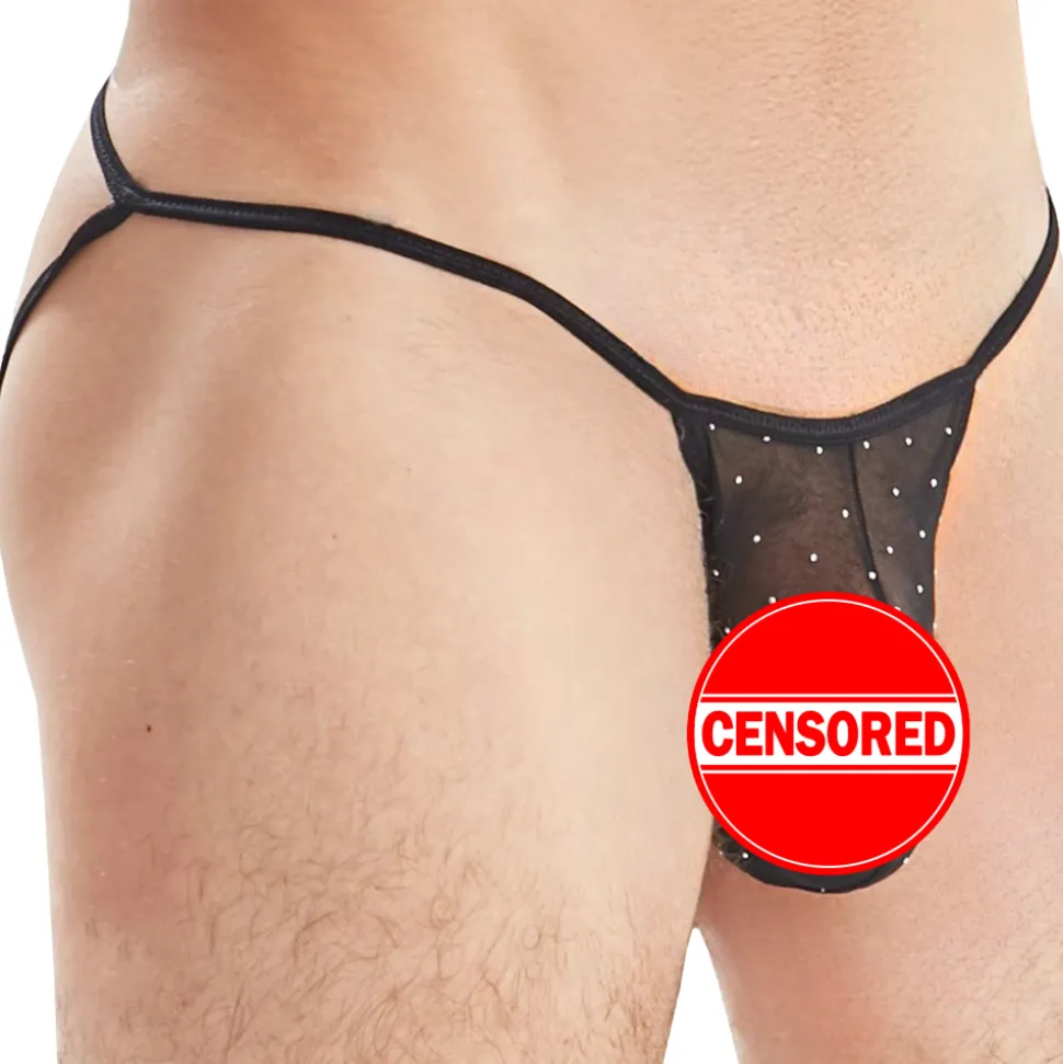 Slip taille basse très sexy en dentelle décorée d’un motif floral. Design original et provocant. Poche frontale en résille transparente décorée de strass scintillants. Fine ceinture élastique. Processus de fabrication respectueux de l’environnement et certifié Oeko-Tex.