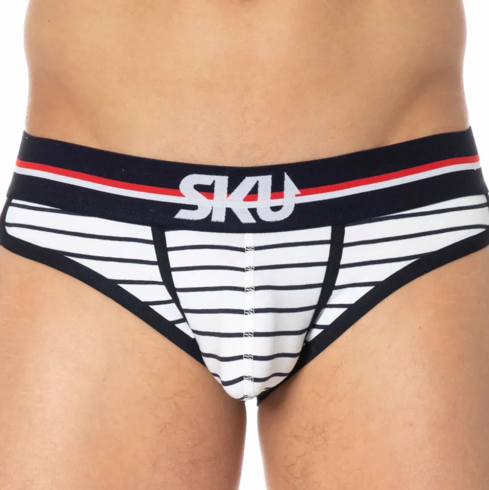 Slip sport et sexy en coton premium doux et extensible de couleur intense. Coupe taille basse ajustée. Poche frontale préformée assurant un excellent maintien. Confort enveloppant sur les fesses. Belle échancrure sur le côté. Ceinture tricolore large et douce signée SKU. Bordures contrastées.