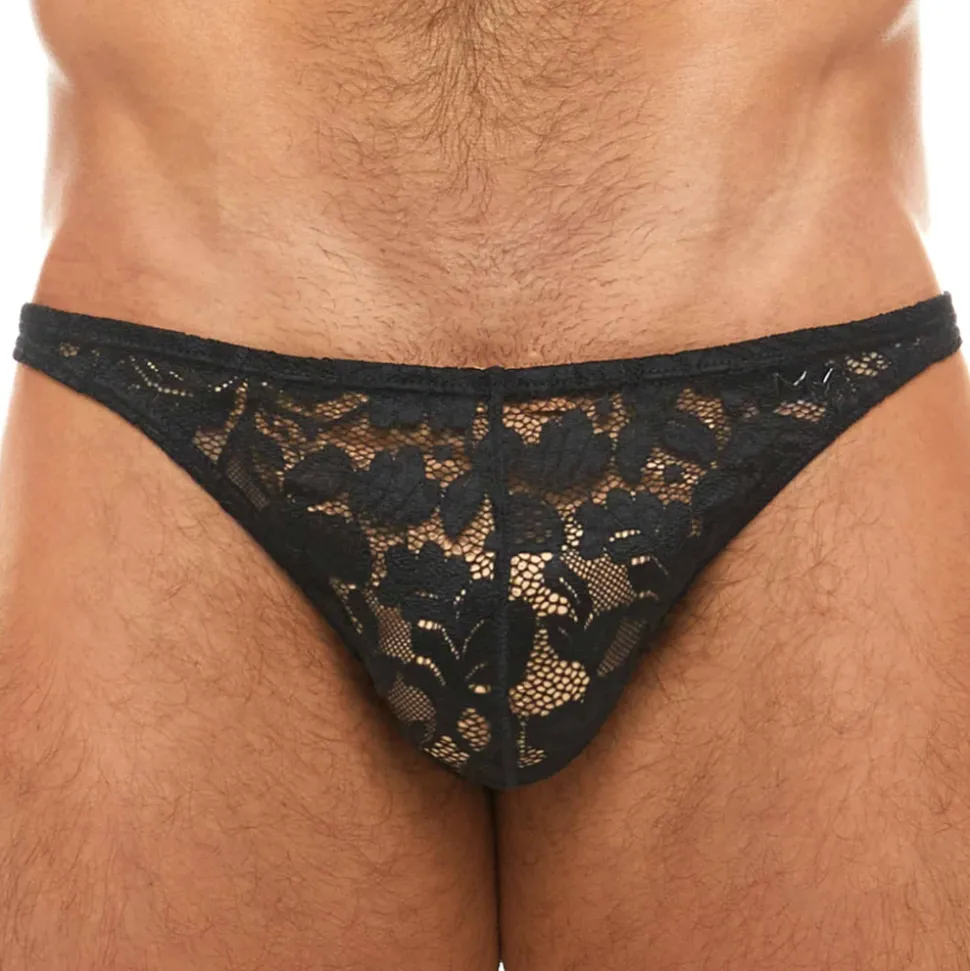 Slip semi-transparent en dentelle extensible décorée d’un motif floral. Coupe minimaliste, taille basse et très sexy. Poche frontale non doublée. Logo MV en relief sur la hanche gauche. Fine ceinture élastique recouverte. Fabriqué en Grèce.
