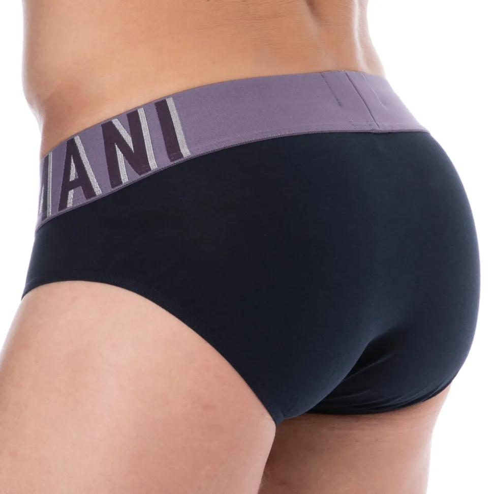 Slip en coton bio extensible, très doux et confortable. Coupe taille basse, simple et élégante. Poche frontale doublée. Large ceinture élastique contrastée signée Emporio Armani.