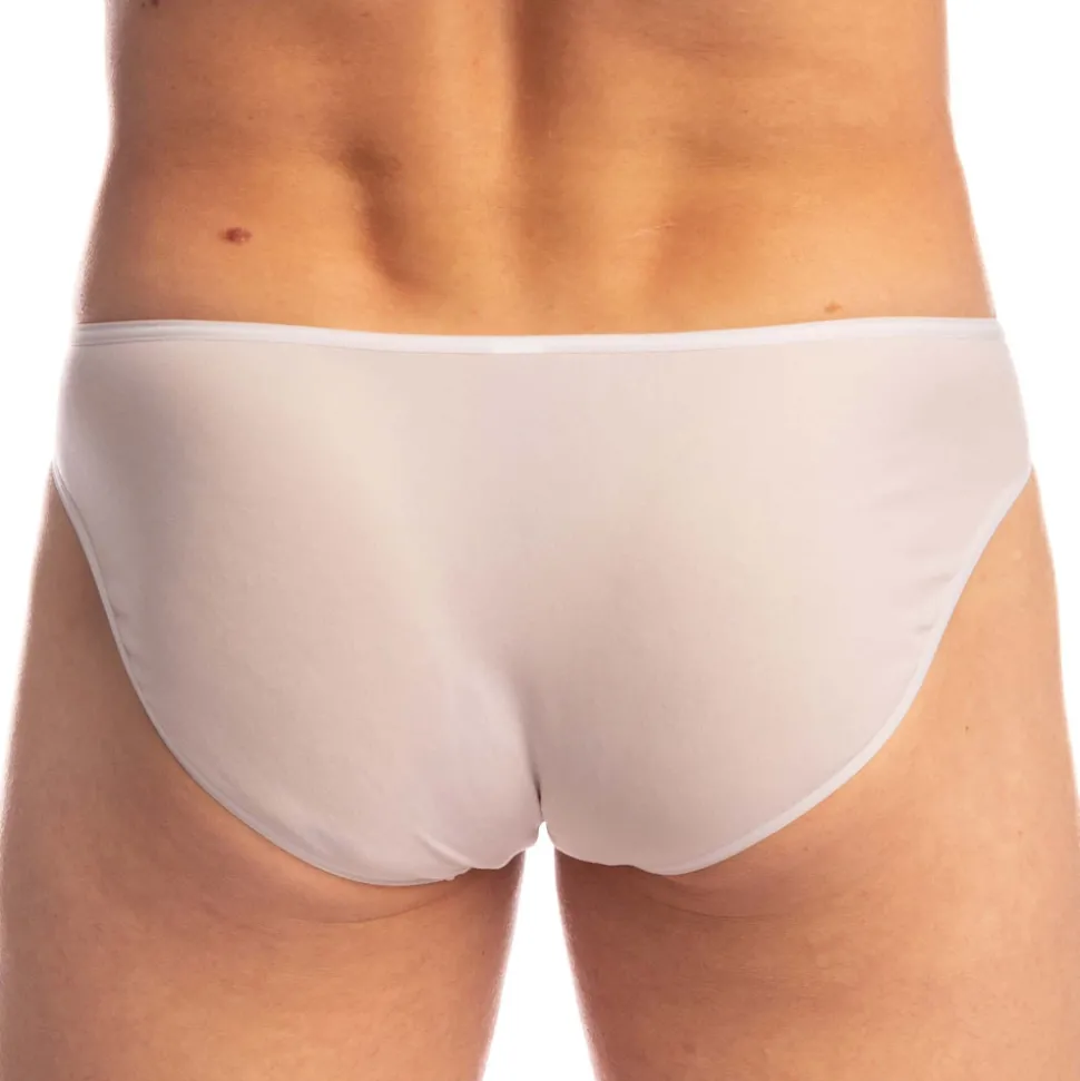 Slip sexy et audacieux en tissu blanc, très fin, doux, fluide et aérien comme de la mousseline. Coupe minimaliste super taille basse. Poche frontale non doublée. Fine ceinture élastique.