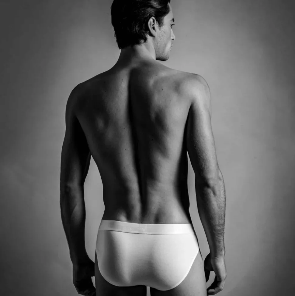 Slip en mélange doux et soyeux de coton et de modal. Coupe classique assurant confort et maintien. Ouverture horizontale HO1 brevetée par HOM, aussi pratique pour les droitiers que les gauchers. Ceinture élastique signée HOM.