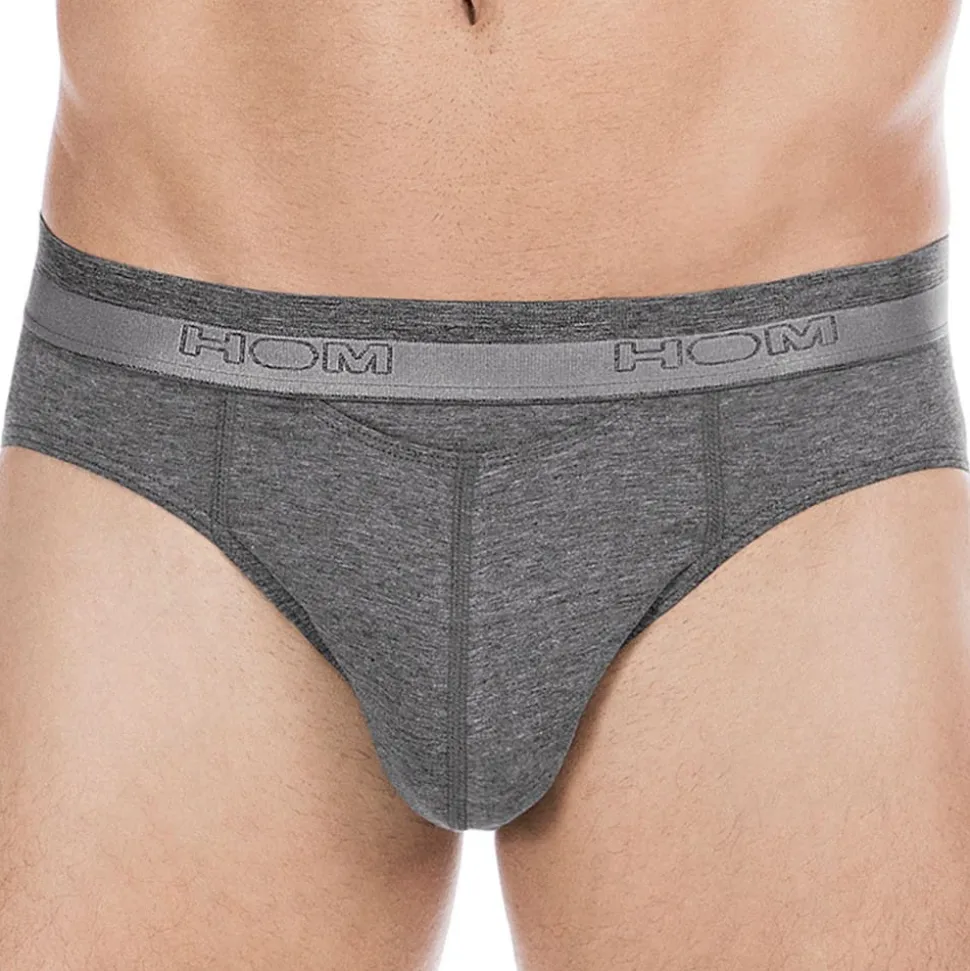 Slip en mélange doux et soyeux de coton et de modal. Coupe classique assurant confort et maintien. Ouverture horizontale HO1 brevetée par HOM, aussi pratique pour les droitiers que les gauchers. Ceinture élastique signée HOM.
