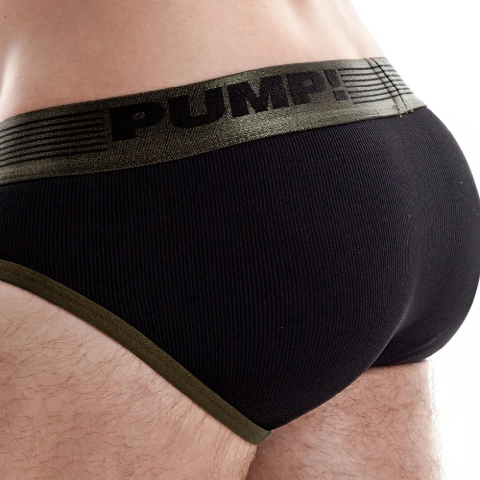 Slip taille basse, en microfibre côtelée très douce, respirante et confortable. Poche frontale en micro mesh super doux. Bordures et poche de couleur contrastée. Ceinture élastique signée PUMP!.