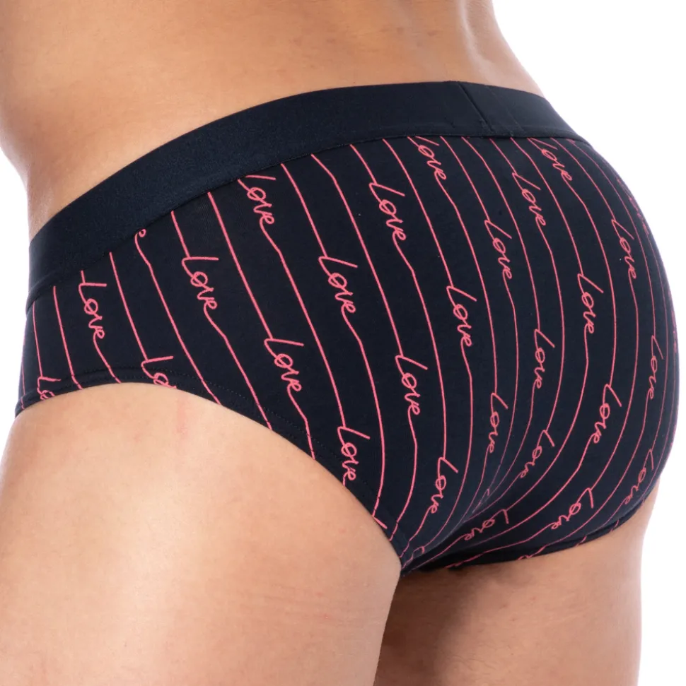 Slip en coton extensible, doux et confortable. Imprimé et ceinture élastique « Love ». Coupe taille basse, simple et élégante. Poche frontale doublée. Edition spéciale Saint-Valentin.
