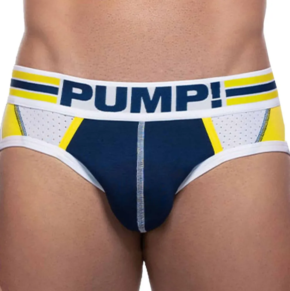 Slip en coton stretch doux et confortable. Poche frontale préformée et doublée en coton. Logo Pro-league sur la fesse droite. Empiècements en micro mesh respirant devant et derrière. Bordures des cuisses élastiquées. Ceinture élastique large signée PUMP!.
