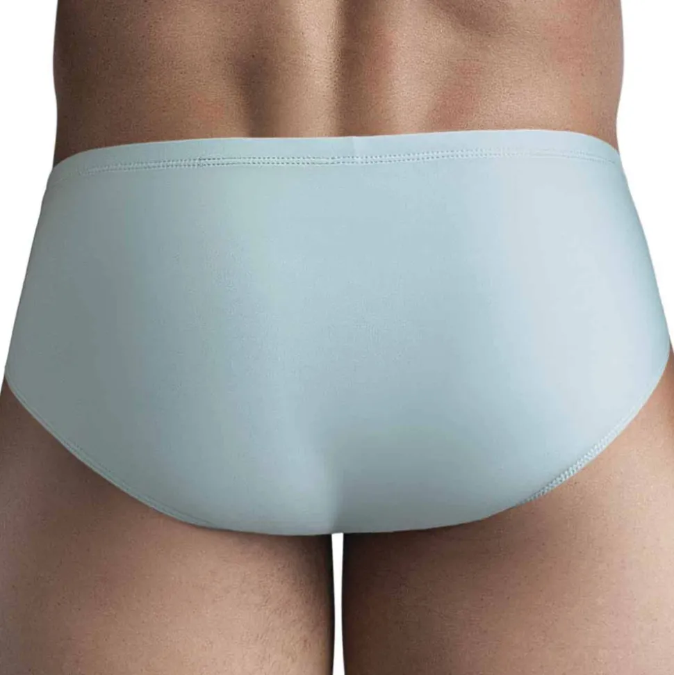 Slip super taille basse en microfibre extensible, douce et légère, de couleur pastel. Poche frontale ergonomique non doublée. Coupe originale très ajustée. Fine ceinture élastique recouverte avec logo Clever en silicone.