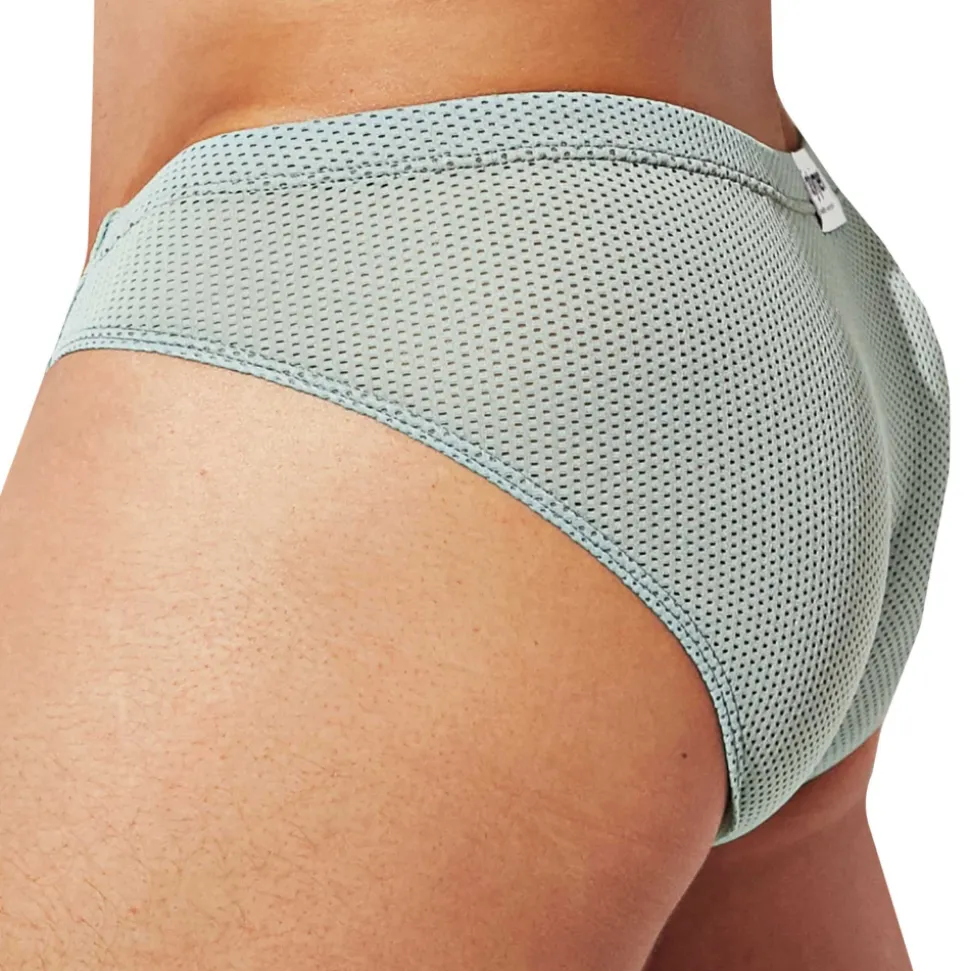 Slip en résille super extensible, douce et respirante de couleur unie. Coupe super taille basse dessinant un V. Poche frontale préformée non doublée. Processus de fabrication respectueux de l’environnement. Fine ceinture élastique recouverte.