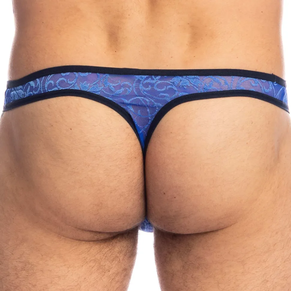 String sensuel et raffiné en dentelle italienne douce, légère et confortable. Tissu transparent orné d’un motif baroque bleu. Coupe minimaliste super taille basse. Poche frontale préformée non doublée. Etiquette L’Homme Invisible cousue sur la fine ceinture élastique.