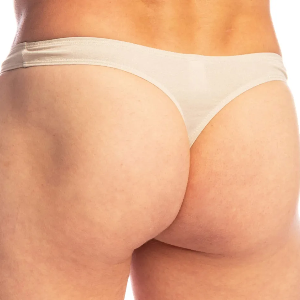 String sensuel en microfibre douce et fluide. Les fils métallisés Lurex apportent un discret effet scintillant. Coupe taille basse et ajustée. Poche frontale non doublée. Ceinture élastique recouverte.