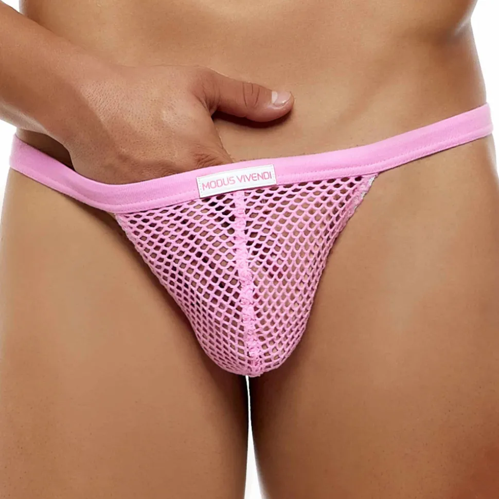 String taille basse provocant en résille dont le maillage très large laisse peu de place à l’imagination. Poche frontale non doublée. Coupe ajustée et très sexy. Etiquette Modus Vivendi en silicone cousue sur la fine ceinture élastique.