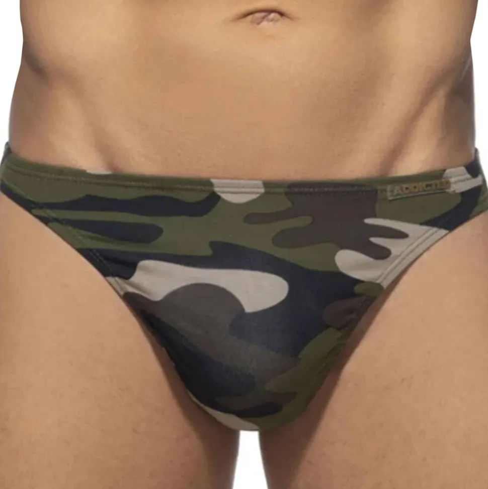 String taille basse très sexy en coton doux, léger et confortable. Motif camouflage. Coupe très ajustée. Poche frontale moulée sans couture pour un confort optimal. Logo Addicted en silicone sur la fine ceinture élastique.
