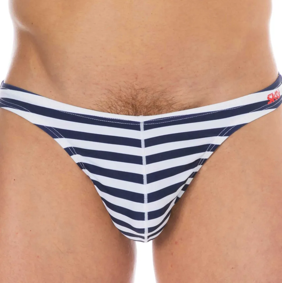 String de bain en microfibre séchant rapidement. Coupe taille basse très ajustée. Poche frontale non doublée. Logo SKU imprimé sur la hanche gauche. Fine ceinture élastique.