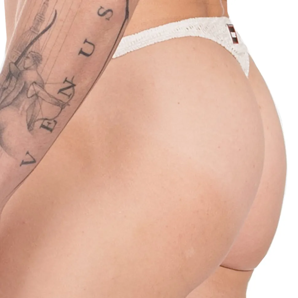 String taille basse très sexy en résille non doublée pour une totale transparence. Coupe minimaliste très ajustée. Etiquette Barcode en silicone en haut des fesses.