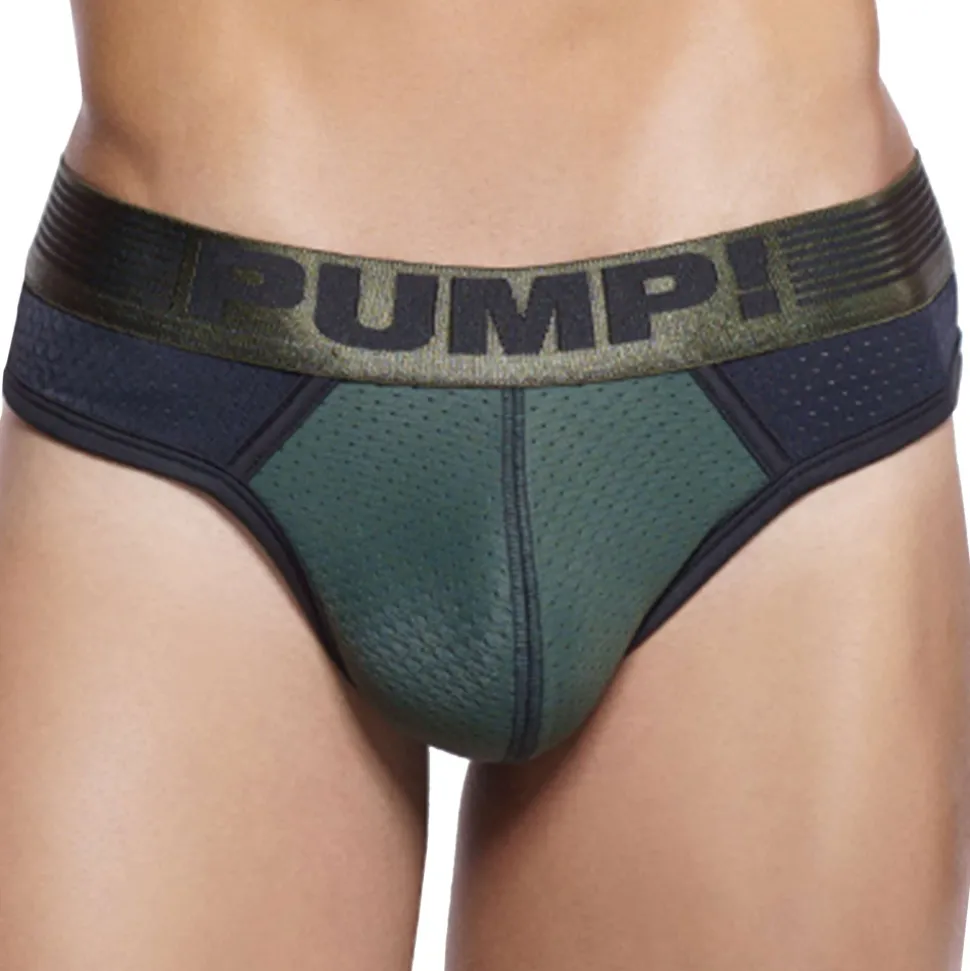 String super confortable en mesh sport respirant. La poche frontale doublée de coton est accentuée par la couture verticale. Ceinture élastique signée Pump!.