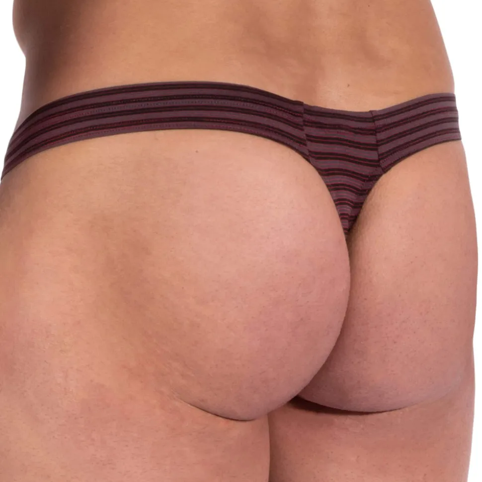 String sophistiqué en microfibre fine et légère, très agréable au contact de la peau. Alternance de fines rayures rouges et noires. Coupe simple, élégante et confortable.