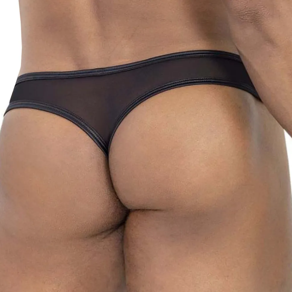 String très sexy en résille douce et totalement transparente. Bordures et bandes sport de couleur contrastée. Poche frontale non doublée. Fine ceinture élastique.