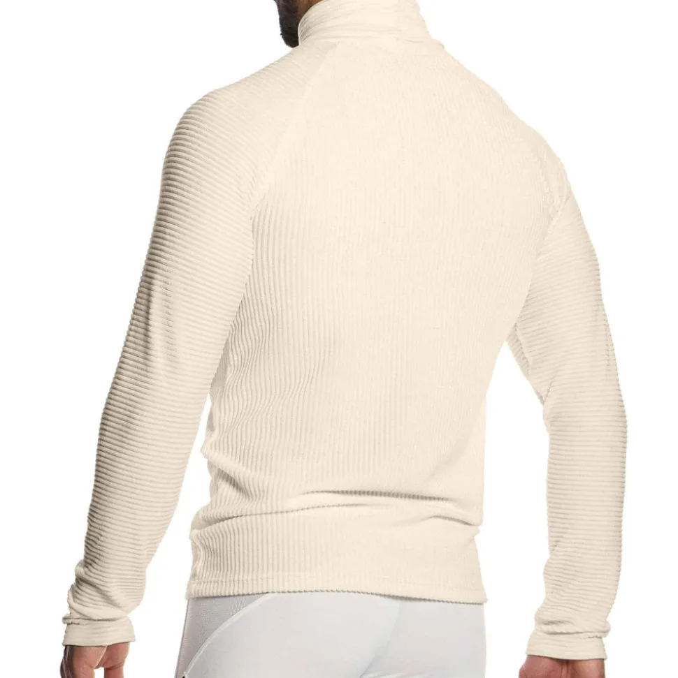 T-shirt luxueux et confortable en coton côtelé super doux avec un aspect velours. Coupe ajustée. Manches longues. Col roulé. Etiquette Modus Vivendi argentée à la taille.