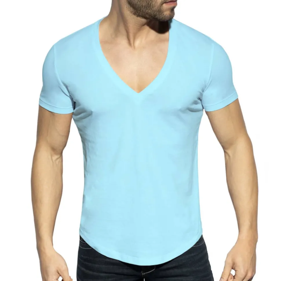T-Shirt Col V Plongeant Bleu Ciel