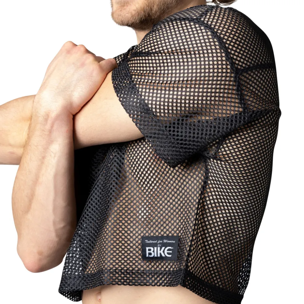 T-shirt court en résille extensible, transparente et ultra légère. Coupe vintage, à la fois courte et oversize, qui s’insipire des maillots d’entrainement du football américain.