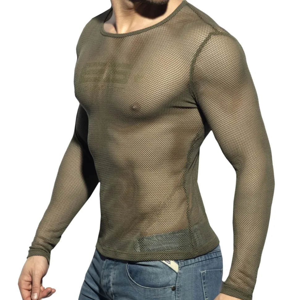 T-shirt à manches longues – ajusté et très sexy – en mesh extensible transparent. Logo ES Collection sur la poitrine et en haut du dos.