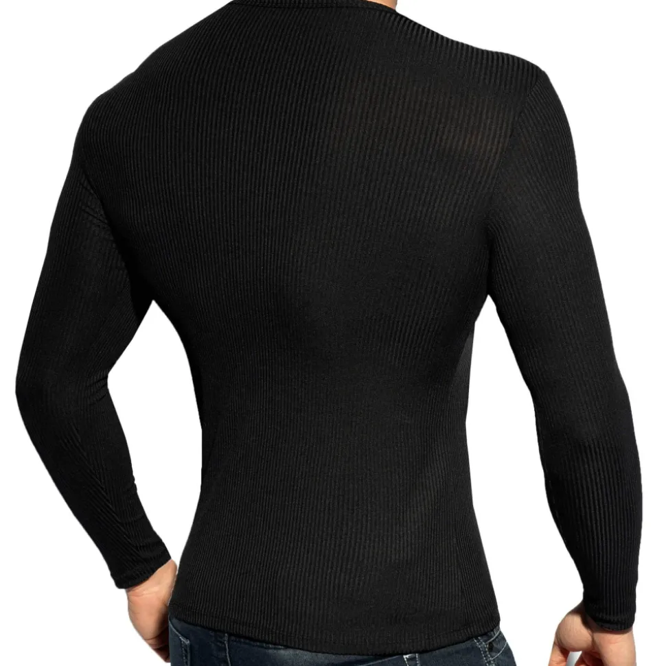 T-shirt en microfibre extensible côtelée de couleur unie. Tissu recyclé doux et antibactérien. Coupe très ajustée. Col rond et manches longues. Logo ES Collection en silicone sur la poitrine.