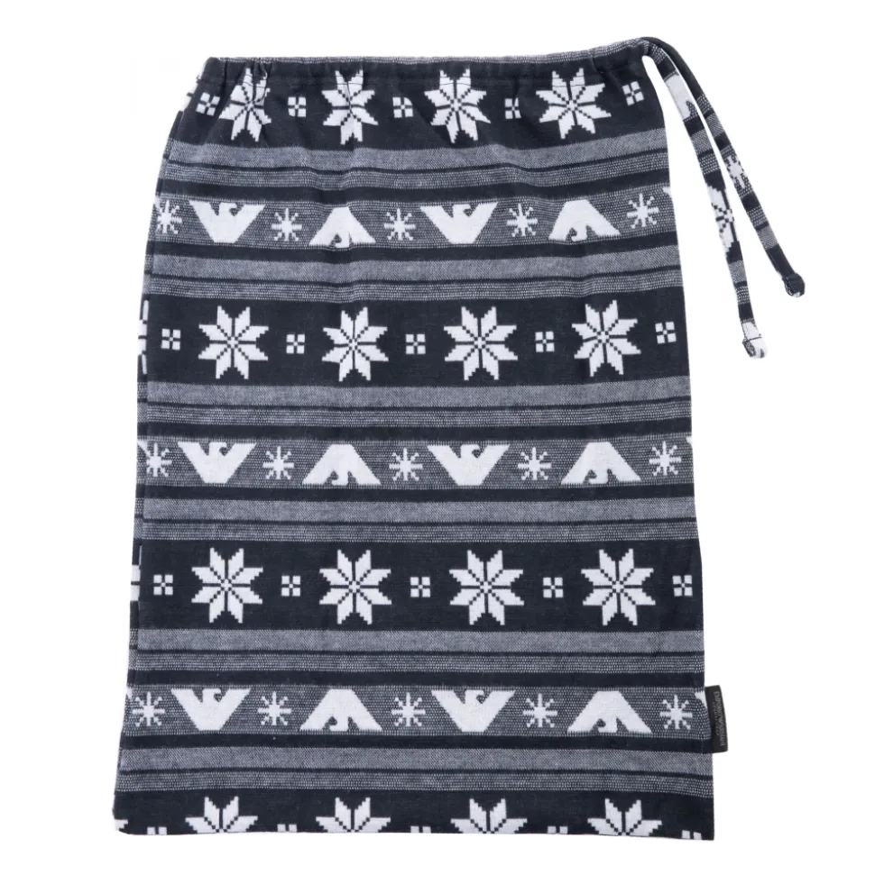 Pyjama en microfibre très douce et confortable. Tissu chaud, idéal pour se détendre à la maison cet hiver. Pantalon doté d’une ceinture élastique et de 2 poches latérales. Coupe ressérée aux chevilles. T-shirt manches longues avec aigles iconiques et flocons de neige. Livré avec un pochon décoré du même motif.